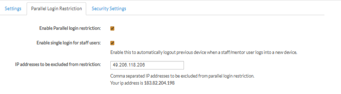 Add IP addresses that should not follow login restrictions. Enter multiple IPs separated by commas.
