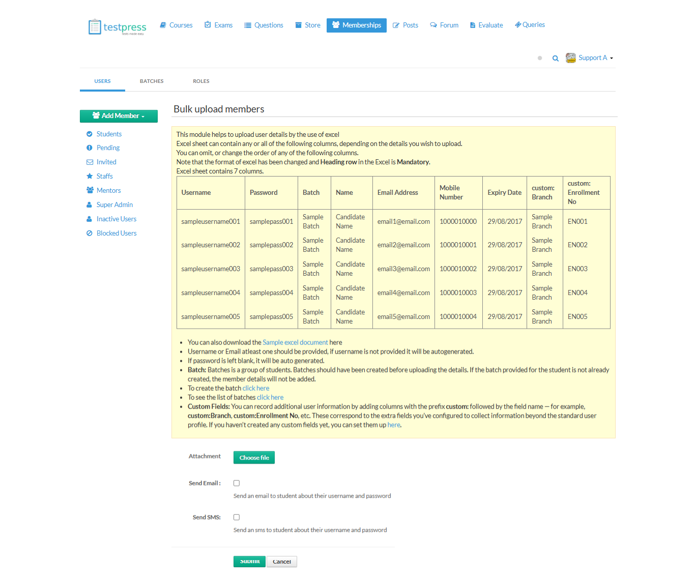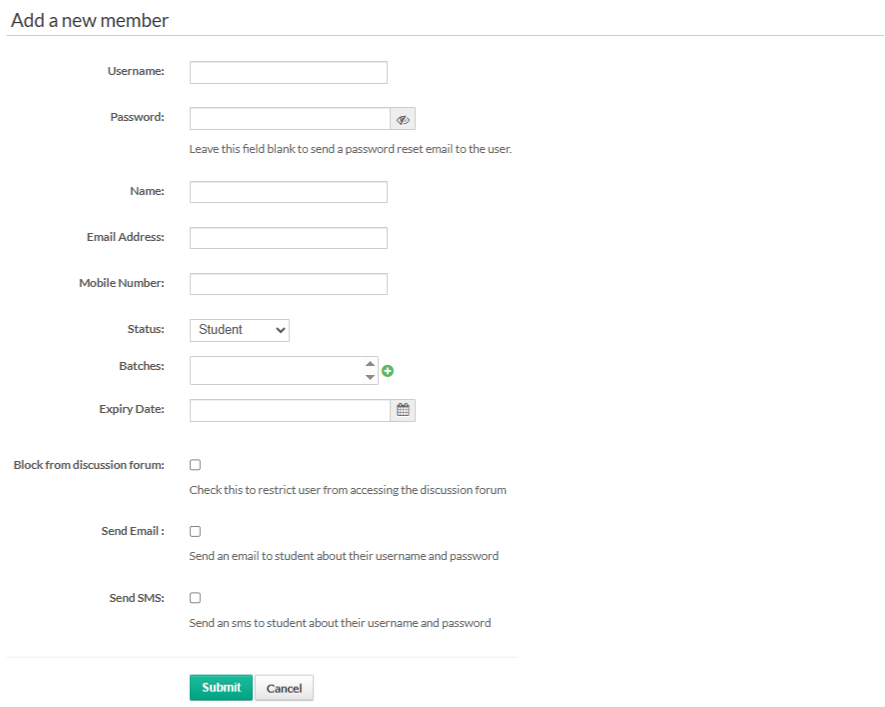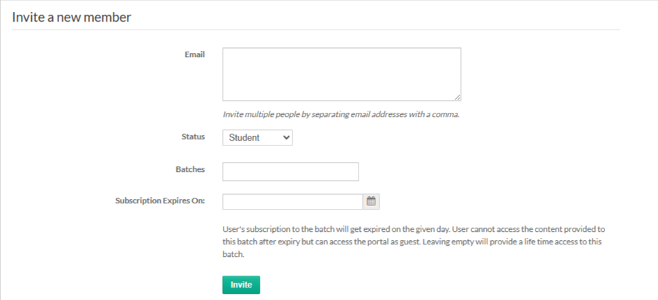 This section explains how you can add new members to your portal using different methods. Adding members allows you to give users access to courses, batches, and learning content.