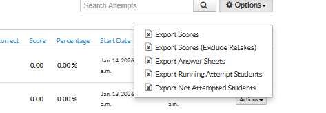 Using Test Reports, you can export scores, answer sheets, attempt status, and more for a specific exam.