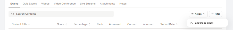 It also provides a complete view of a learner’s activity within a course, including exams, quizzes, videos, live sessions, and other learning content.
