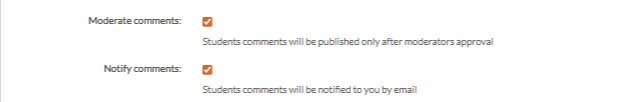 This section helps you control and monitor student comments across your platform. You can choose to moderate comments before they are published and receive email notifications whenever a student posts a comment, ensuring better content quality and timely responses.